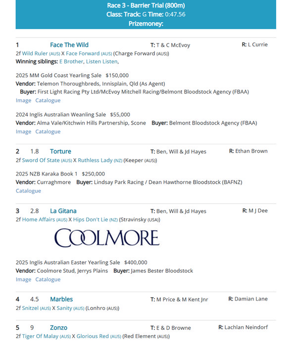 La Gitana is from star producer Hips Don’t Lie, who is the grand-dam of the previous trial winner Free Flying.