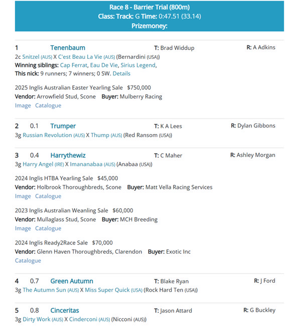 Tenenbaum was a $750,000 Inglis Easter purchase for Mulberry Racing from Arrowfield Stud and has a pedigree that suggests further will suit him even better given he is a full brother to Hong Kong Derby winner Cap Ferrat, who was also second in the Group I ATC Spring Champion Stakes.