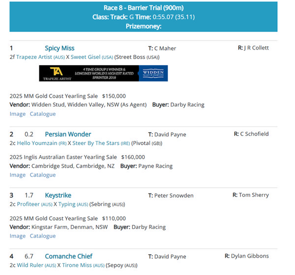 Click here to see all the trial results with Sale Mail at Breednet and at Racing NSW with video.