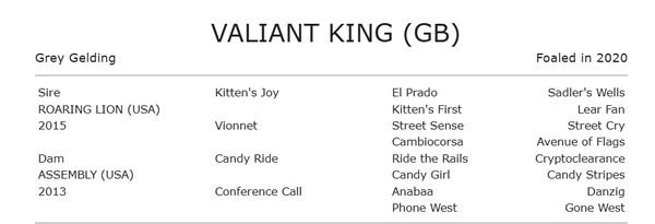Valiant King was bred by The Assembly Partnership and is the first stakes winner out of the Candy Ride mare Assembly, a half-sister to Listed winner Seismic Wave and to the dam of G3 winner Verbal.
