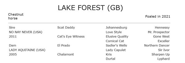 Lake Forest's third dam Durtal by Lyphard was Champion 2YO Filly in England and dam of 2 x Ascot Gold Cup winner Gildoran.