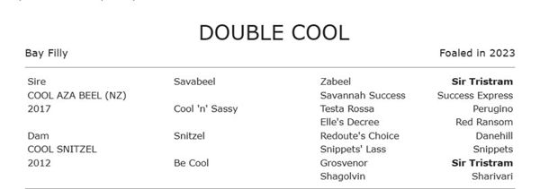Double Cool is the fifth foal and first filly to race from three time winning Snitzel mare  Cool Snitzel.