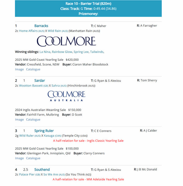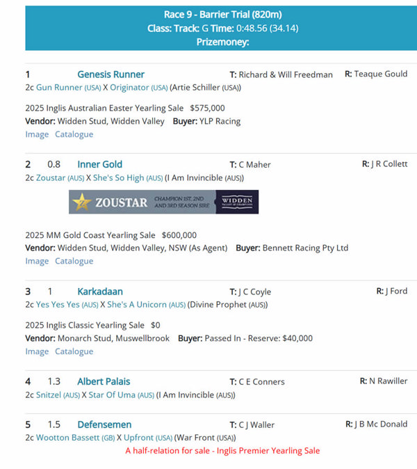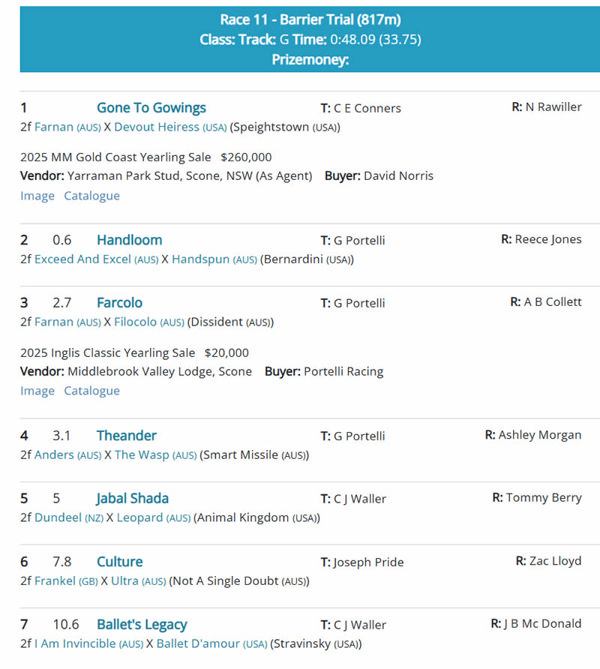 Click here for all the trial results at Breednet with Sale Mail and at Racing NSW with video.