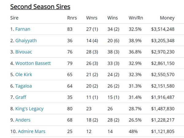 From his first two crops, Farnan has sired 39 individual winners, including 27 this season alone, along with nine individual stakes horses and nearly $6 million in earnings. His ability to produce high-class performers from the outset underlines his emergence as one of the most influential young sires in the country.